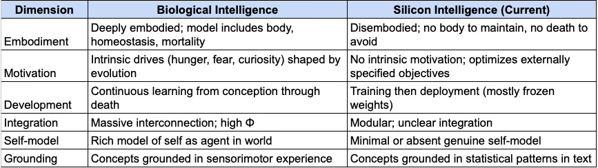 An AI has nothing to lose, it’s not clear there’s a “there” there that could lose anything. This may explain why AI can be so capable and yet feel so flat. It predicts beautifully. But it doesn’t care about its predictions, because these predictions do not affect it. Caring requires stakes in the game. Stakes in the game require mortality.