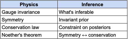 One more connection to take note exists. Symmetries reduce the hypothesis space for inference; they tell you what doesn’t need to be inferred.